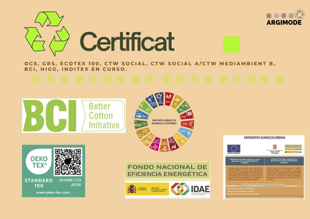 Ens adaptem a les noves exigències del mercat en innovació i certificacions, complint així totes les normatives de OCS (Organic Cotton Standar) i GRS (Global Recycled Standar).
